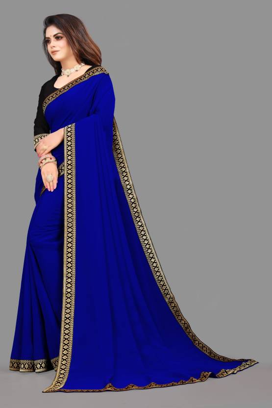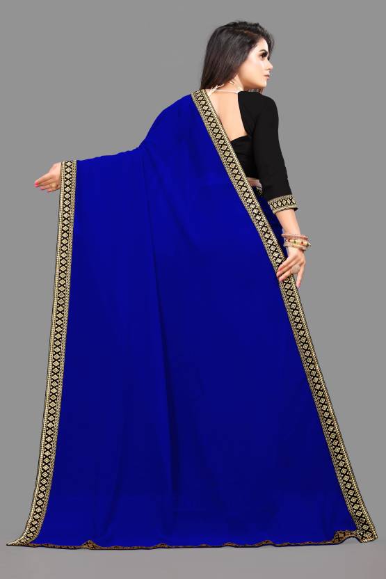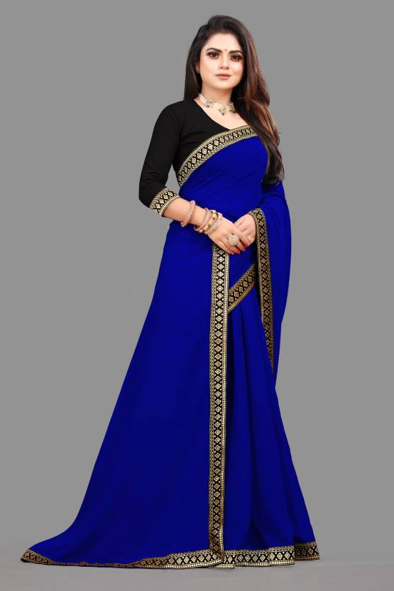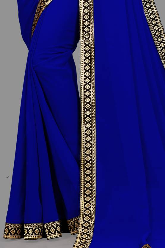 Elegant Royal Blue plain georgette saree with embroidered lace border. Comes with matching art silk blouse piece. Lightweight, flowy drape — ideal for parties, weddings, and festive gatherings.
